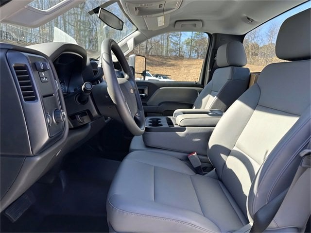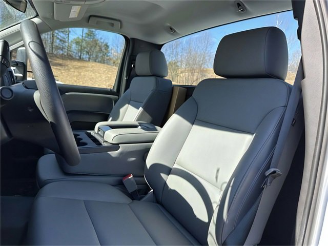 Preferred Equipment Group 1WT, Vocational Specific Heavy Suspension Package, 26,000 lbs. GCWR (11,793 kg), 4 Speakers, 4-Speaker Audio System, 4.10 Rear Axle Ratio, 40/20/40 Front 3-Passenger Split-Bench Seat, 40/20/40 Front 3-Passenger Split-Bench Seat w/Dk Ash, ABS brakes, Air Conditioning, AM/FM radio, Delay-off headlights, Driver door bin, Dual front impact airbags, Dual front side impact airbags, Dual rear wheels, Electronic Stability Control, Exterior Parking Camera Rear, Front Center Armrest w/Storage, Front License Plate Kit, Front reading lights, Front Stabilizer Bar, Frontal Passenger-Side Airbag Deactivation Switch, Fully automatic headlights, Limited-Slip Axle, Manual Regeneration Diesel Particulate Filter DPF, Occupant sensing airbag, Overhead airbag, Overhead console, Passenger cancellable airbag, Passenger door bin, Passenger vanity mirror, Power steering, Power Take-Off Engine Control Provisions, Power Windows w/Driver Express Up & Down, Premium audio system: Chevrolet MyLink, Radio: AM/FM Stereo w/4.2 Diagonal Color Display, Single-Zone Air Conditioning, Speed control, Tachometer, Tail Lamp Wiring Harness Provisions, Tilt steering wheel, Traction control, Trip computer, Upfitter Electrical Provisions In Rear Of Cab, Variably intermittent wipers, Vinyl Seat Trim, Voltmeter, and Wheels: 19.5 x 6.75 Black Painted Hub Piloted Steel w/8-Holes.