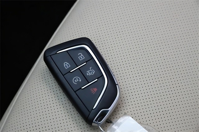 - Within 6 to 9 feet of the vehicle with the factory key fob, the Cadillac Crest logo will illuminate on the ground to indicate the foot-kick location