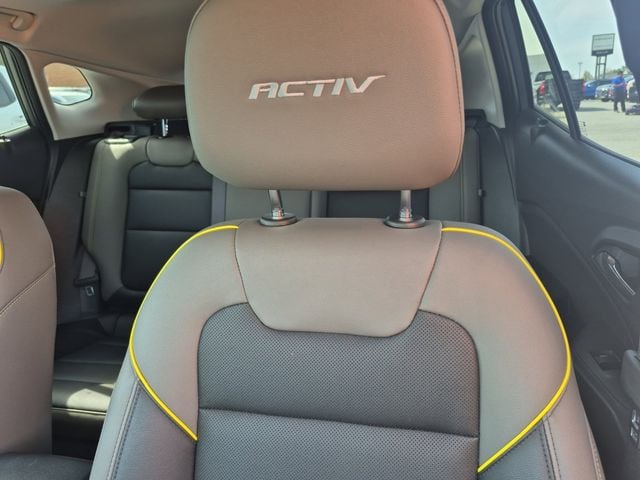 Key features include front wheel drive, 1.2L turbo engine, 6 speed automatic transmission, ACTIV trim, touchscreen infotainment, backup camera, and a comfortable, modern interior.