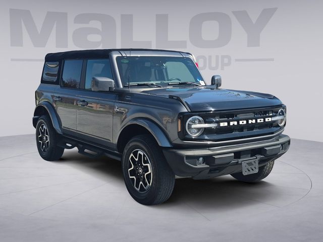Key features include 2.7L EcoBoost V6, 10 speed automatic transmission, 4WD, Outer Banks trim, removable top and doors, touchscreen infotainment, and advanced terrain capability.
