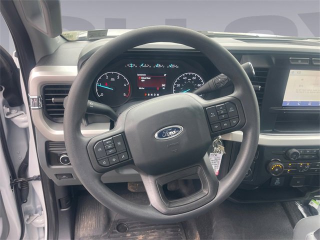 Recent Arrival! GVWR: 14,000 lb Payload Package, Order Code 640A, XL Chrome Package (Bright Grille and Remote Start), 17" Argent Painted Steel Wheels, 3.73 Axle Ratio, 4 Speakers, 4-Ton Hydraulic Jack, 4-Wheel Disc Brakes, ABS brakes, Air Conditioning, AM/FM radio, AM/FM Stereo w/MP3 Player, Brake assist, Compass, Delay-off headlights, Dual 68 AH/65 AGM Battery, Dual front impact airbags, Dual front side impact airbags, Dual rear wheels, Emergency communication system: SYNC 4 911 Assist, Engine Block Heater, Exterior Backup Alarm (Pre-Installed), Front anti-roll bar, Front Center Armrest w/Storage, Front License Plate Bracket, Front reading lights, Front wheel independent suspension, Fully automatic headlights, HD Vinyl 40/20/40 Split Bench Seat, Heated door mirrors, Illuminated entry, Limited Slip w/4.10 Axle Ratio, Low tire pressure warning, Outside temperature display, Overhead airbag, Overhead console, Panic alarm, Passenger cancellable airbag, Passenger vanity mirror, Platform Running Boards, Power door mirrors, Power steering, Power windows, Rear anti-roll bar, Rear View Camera & Prep Kit, Remote keyless entry, Speed control, Steering wheel mounted audio controls, SYNC 4 Communications & Entertainment System, Tachometer, Telescoping steering wheel, Tilt steering wheel, Traction control, Trip computer, Turn signal indicator mirrors, and Variably intermittent wipers.