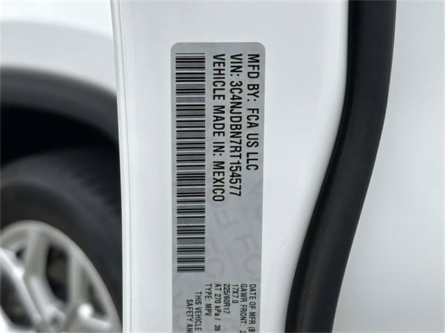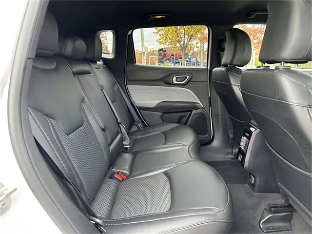 Quick Order Package 29J Latitude, Fully automatic headlights, Heated door mirrors, ParkView Rear Back-Up Camera, Speed control, 17" x 7" Aluminum Wheels, 3.73 Final Drive Ratio, 4-Wheel Disc Brakes, 6 Speakers, ABS brakes, Air Conditioning, Alloy wheels, AM/FM radio: SiriusXM, Auto High-beam Headlights, Brake assist, Bumpers: body-color, Compass, Delay-off headlights, Driver door bin, Driver vanity mirror, Dual front impact airbags, Dual front side impact airbags, Electronic Stability Control, Emergency communication system: Jeep Connect, Four wheel independent suspension, Front anti-roll bar, Front Bucket Seats, Front Center Armrest w/Storage, Front fog lights, Front License Plate Bracket, Front reading lights, Illuminated entry, Knee airbag, Leather Shift Knob, Leather steering wheel, Low tire pressure warning, Occupant sensing airbag, Outside temperature display, Overhead airbag, Overhead console, Panic alarm, Passenger door bin, Passenger vanity mirror, Power door mirrors, Power steering, Power windows, Premium Cloth/Vinyl Bucket Seats, Radio: Uconnect 5 w/10.1" Display, Rear anti-roll bar, Rear seat center armrest, Rear window defroster, Rear window wiper, Remote keyless entry, Security system, Split folding rear seat, Spoiler, Steering wheel mounted audio controls, Tachometer, Telescoping steering wheel, Tilt steering wheel, Traction control, Trip computer, and Variably intermittent wipers.